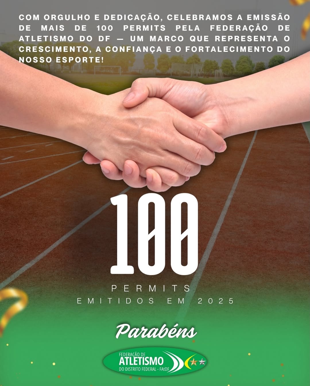 A Federação de Atletismo do Distrito Federal celebra a emissão de 106 Permits ao longo do ano de 2025, um marco que reforça o compromisso da entidade com a organização e a legalidade das competições realizadas em todo o estado.