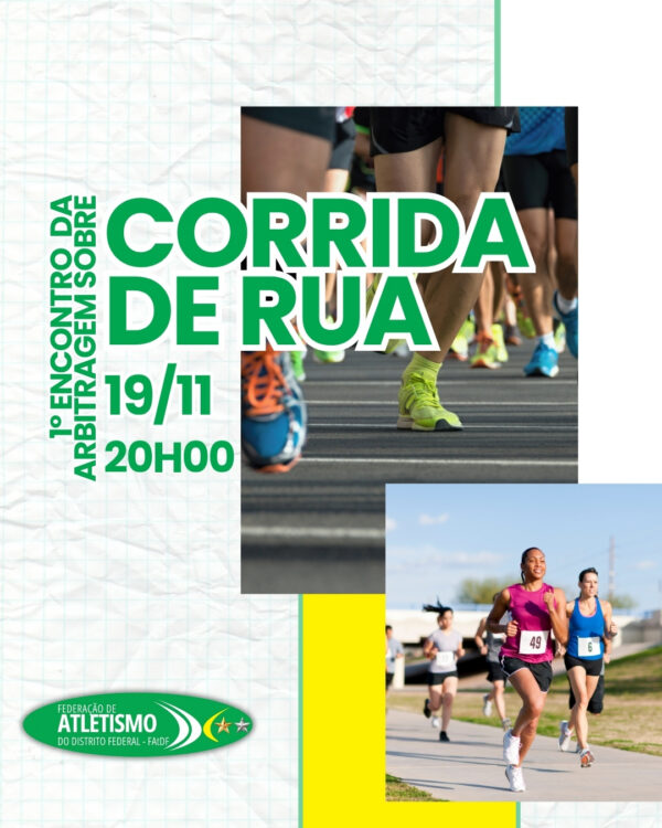 A Federação de Atletismo do Distrito Federal (FAtDF) promoverá, na próxima quarta-feira (19/11), o 1º Encontro de Arbitragem sobre Corrida de Rua, iniciativa voltada ao aperfeiçoamento técnico dos árbitros que atuam nas provas do DF.