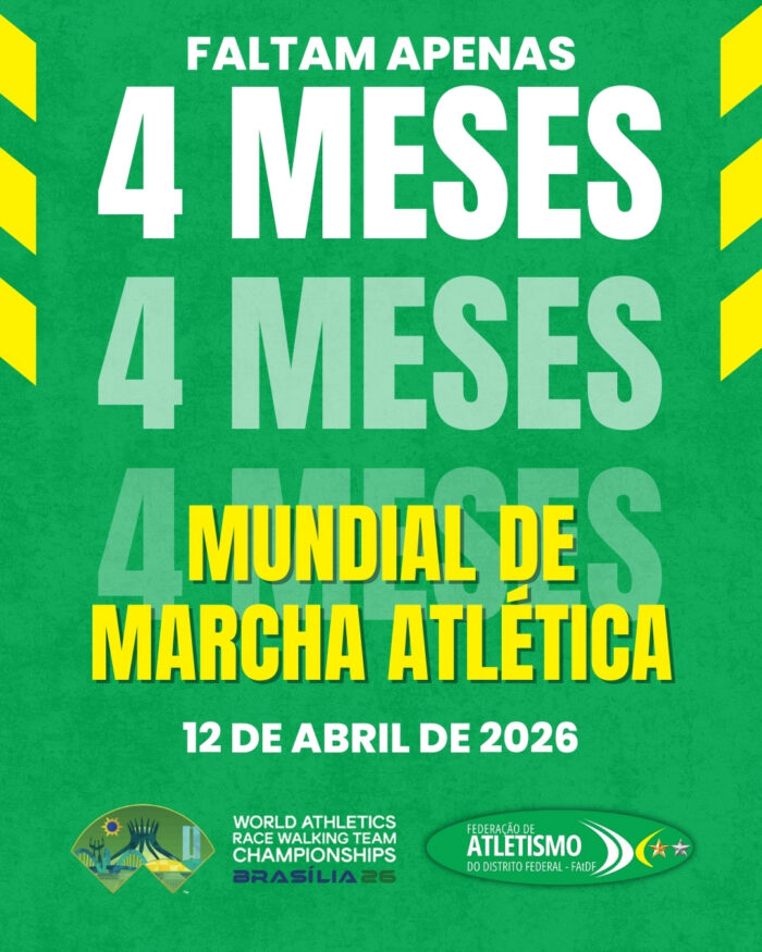 Brasília já vive o clima da elite da marcha atlética. Em quatro meses, a capital federal será palco do Mundial de Marcha por Equipes 2026, reunindo os melhores atletas do planeta em um dos eventos mais importantes do calendário internacional.