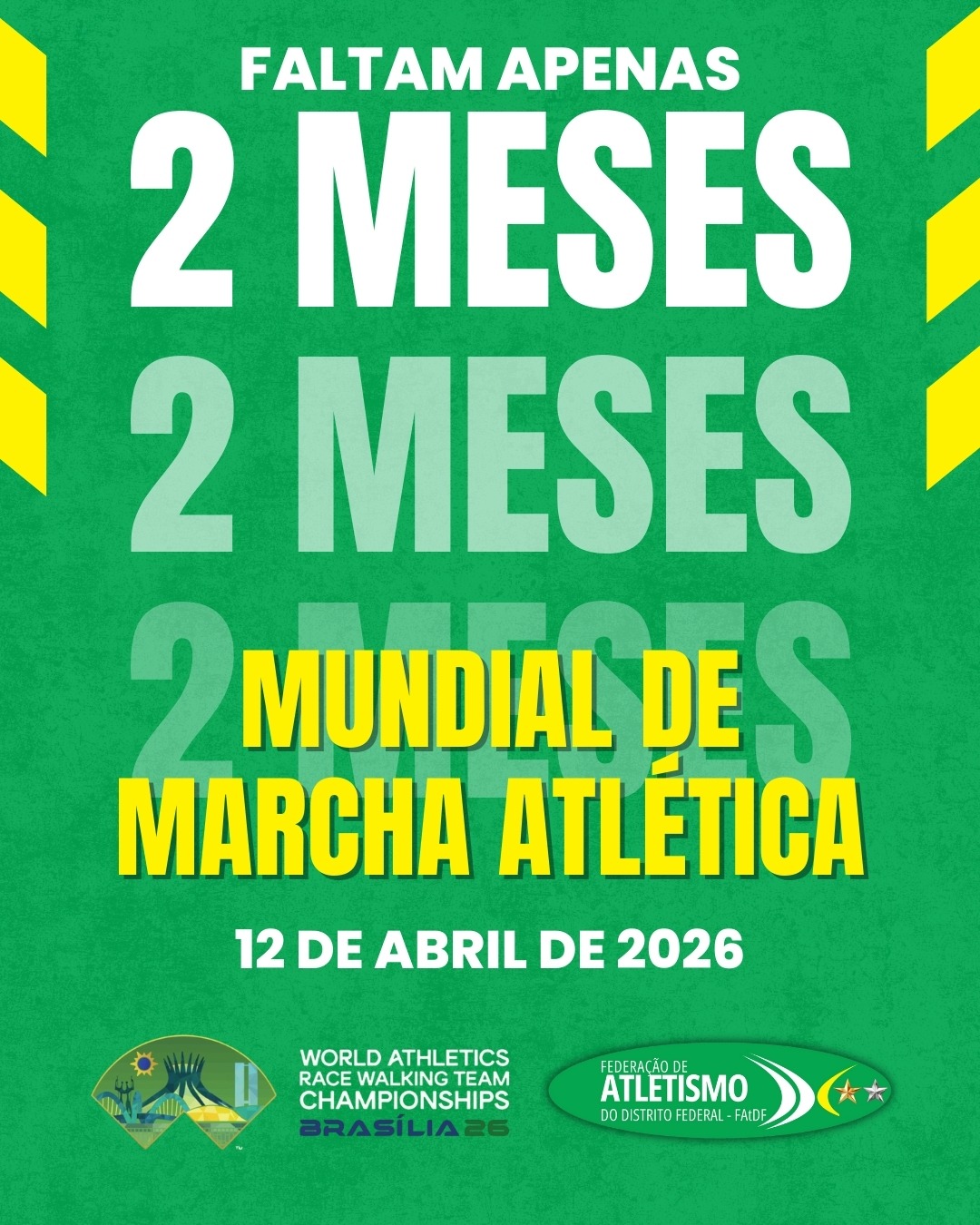 Faltando apenas dois meses para o início do Campeonato Mundial de Marcha Atlética por Equipes 2026, Brasília se prepara para receber um dos eventos mais aguardados do calendário esportivo internacional. A capital federal, que sediará a competição no dia 12 de abril de 2026, entra em sua fase final de preparação para acolher atletas de elite de todo o mundo.