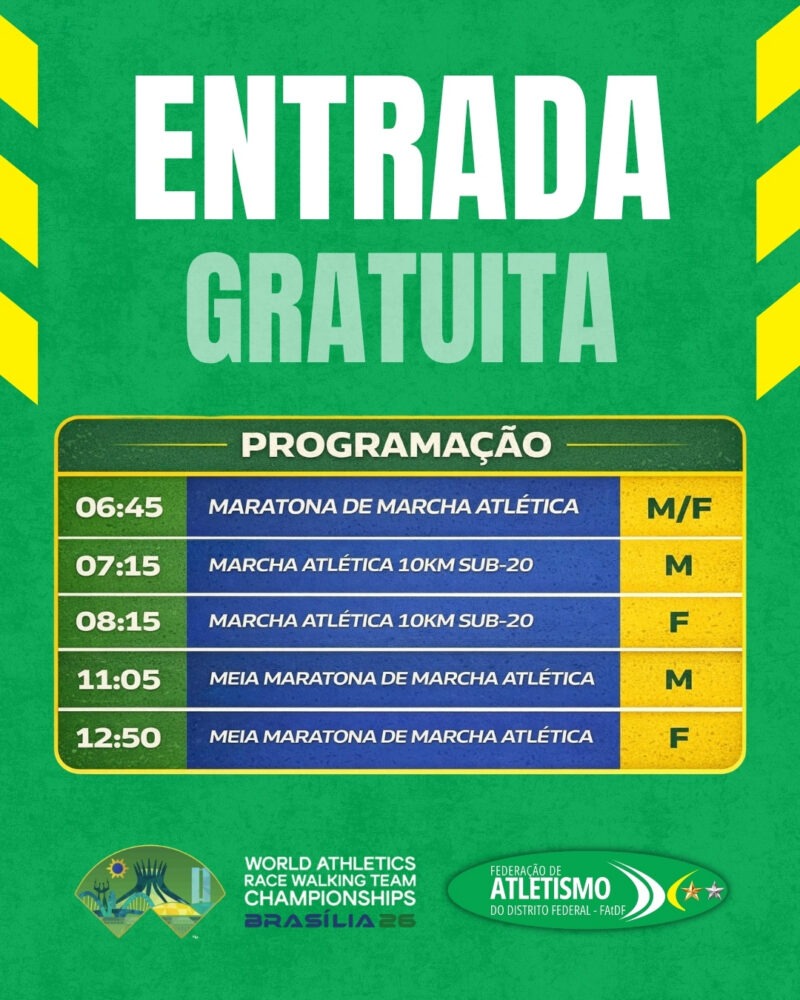 A capital do país será palco de um dos maiores eventos do atletismo mundial! No próximo domingo (12/04), Brasília sediará o Mundial de Marcha Atlética por Equipes, reunindo os melhores atletas da modalidade em uma competição de alto nível.