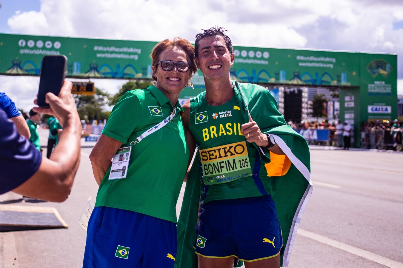 “Esse resultado é uma construção, a partir de passos que foram dados por muita gente”, lembrou Caio. “Em 1999, a delegação do Brasil era só minha mãe (a ex-marchadora e treinadora Gianetti Bonfim) e o Sérgio Galdino (brasileiro que disputou nove Mundiais de marcha). Eram só os dois, chegavam um dia antes da prova, e um dava a hidratação para o outro. Isso era o melhor que o Brasil podia fazer naquela época. Depois, a Érica quebrou paradigmas, levando o Brasil à primeira medalha de nível mundial que tivemos.”