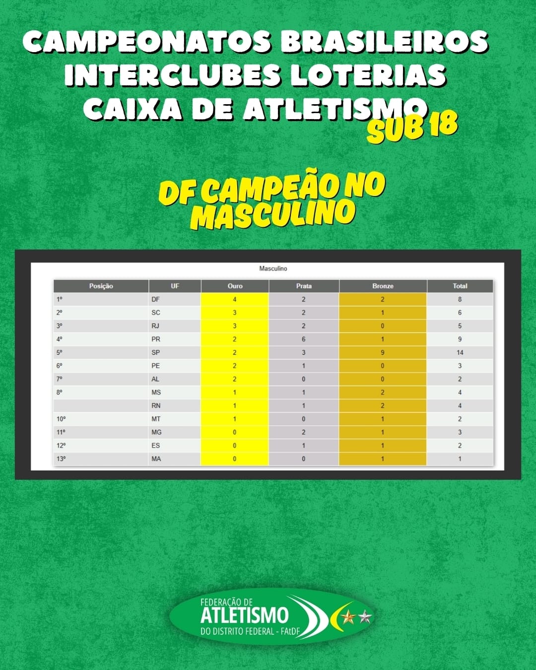 O Centro de Atletismo de Sobradinho (CASO) conquistou o título de campeão por equipes no naipe masculino no Campeonato Brasileiro Interclubes Loterias Caixa Sub-18 de Atletismo...